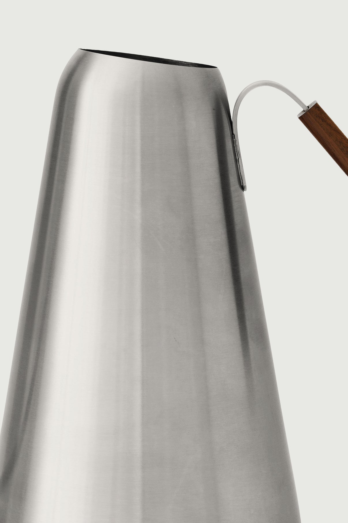Sleek and elegant, the Hydrous Watering Can features a long pouring spout designed to reach small potted plants or through thick foliage. The brushed stainless steel design has a wooden handle, offsetting the curved lines of the container while ensuring a good grip.