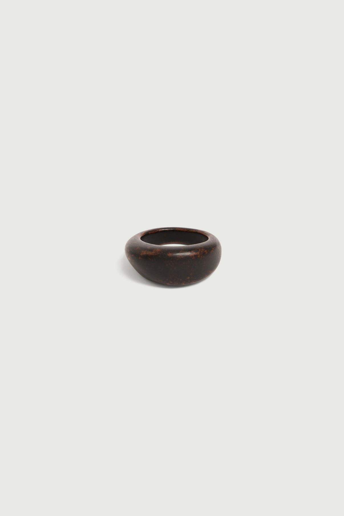 ZEA is a ring with an organic design. Its shape, as if carved from wood, is round and thick. Made from resin, the wood-brown colour can vary from one piece to another.