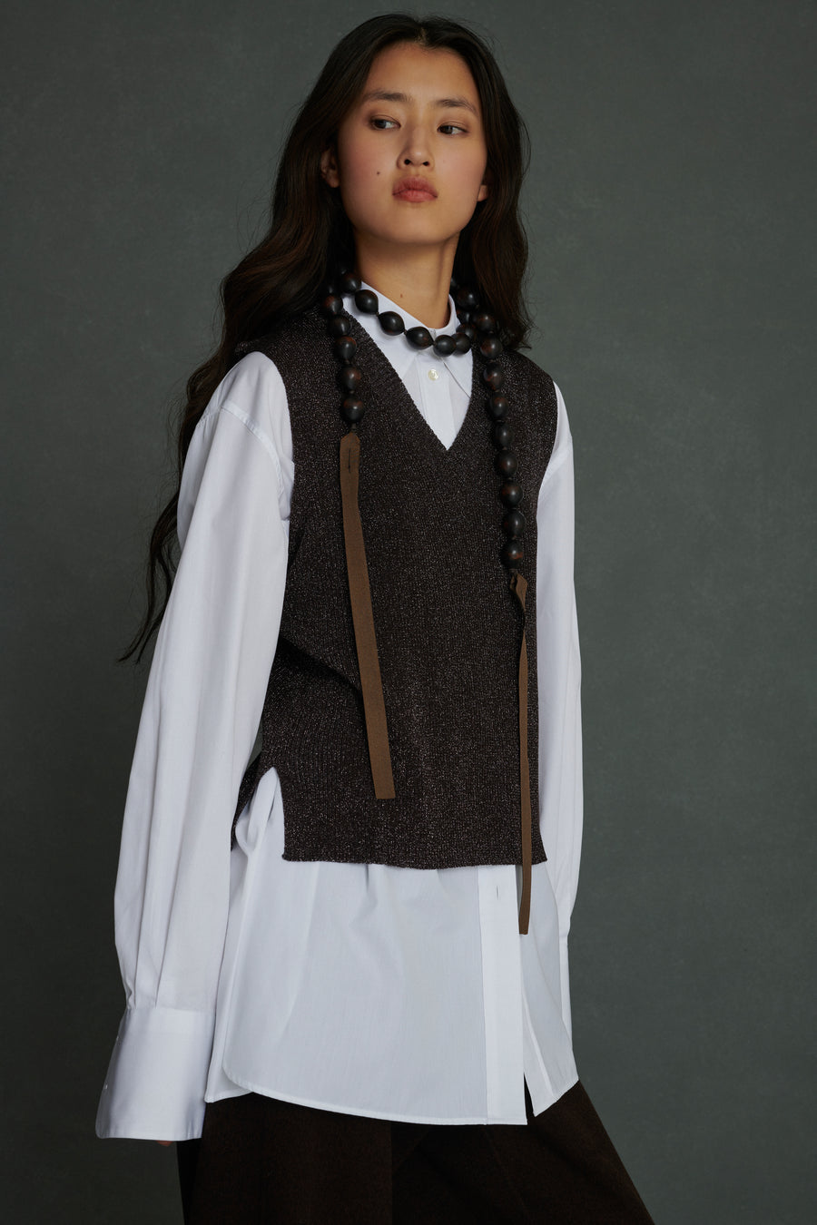 ZEBRA is a long necklace you can tie yourself with a flat cord. The design of its beads is reminiscent of an organic seed. Made from resin, the wood brown colour can vary from one piece to another.