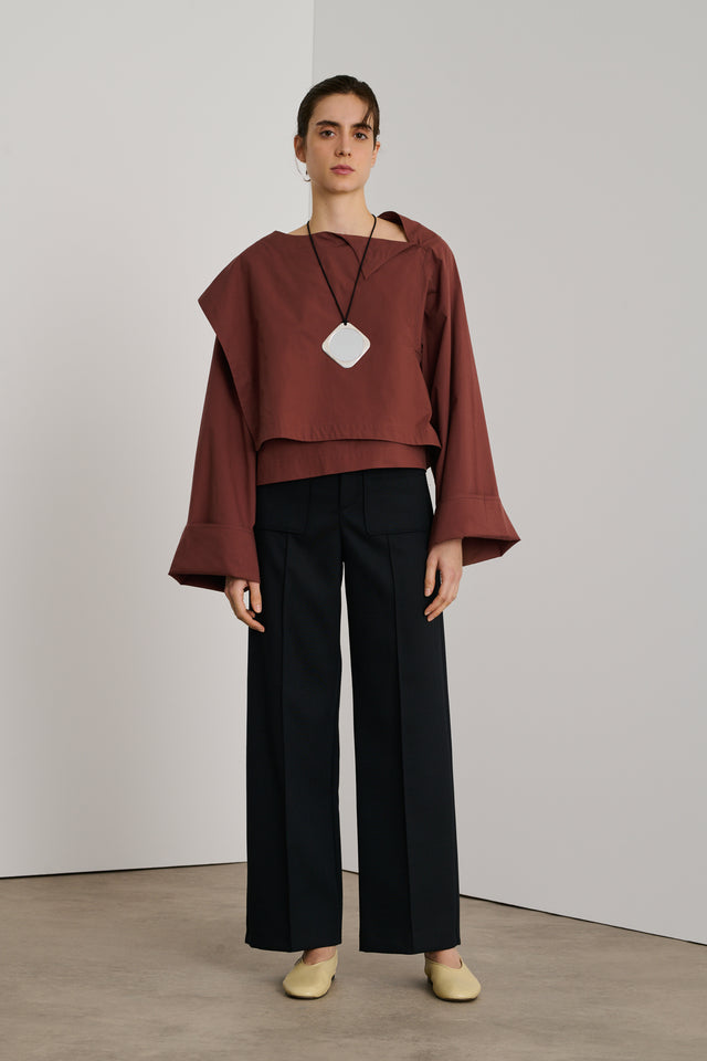 HARRY is an iconic Soeur trouser, recognisable by patch pockets at the front and back and a sharp crease along the leg. Suitable for all body types thanks to a slightly flared cut and 7/8 length that hangs above the ankle to elongate the silhouette. This version in soft wool provides structure and is particularly comfortable, ideal for everyday wear.