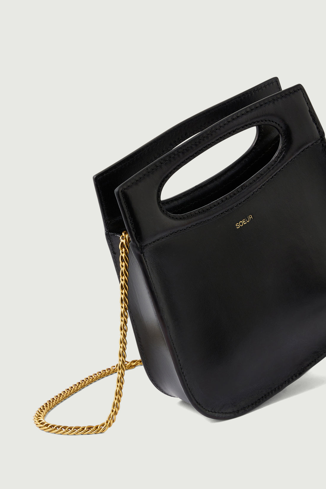 CHERI MINI is the miniature version of one of our iconic bags, recognisable by its moulded oval handle. It can be worn by hand or crossbody with its fine gold chain. Perfect for dressing up an outfit, it is also practical for carrying just the essentials.