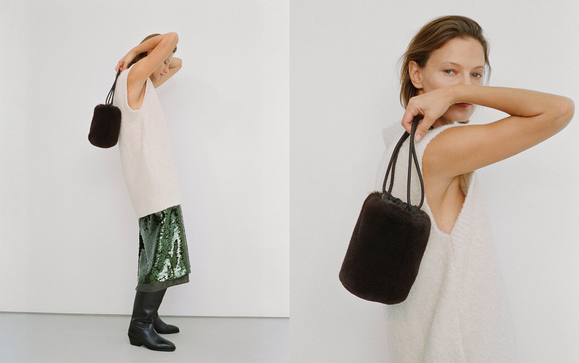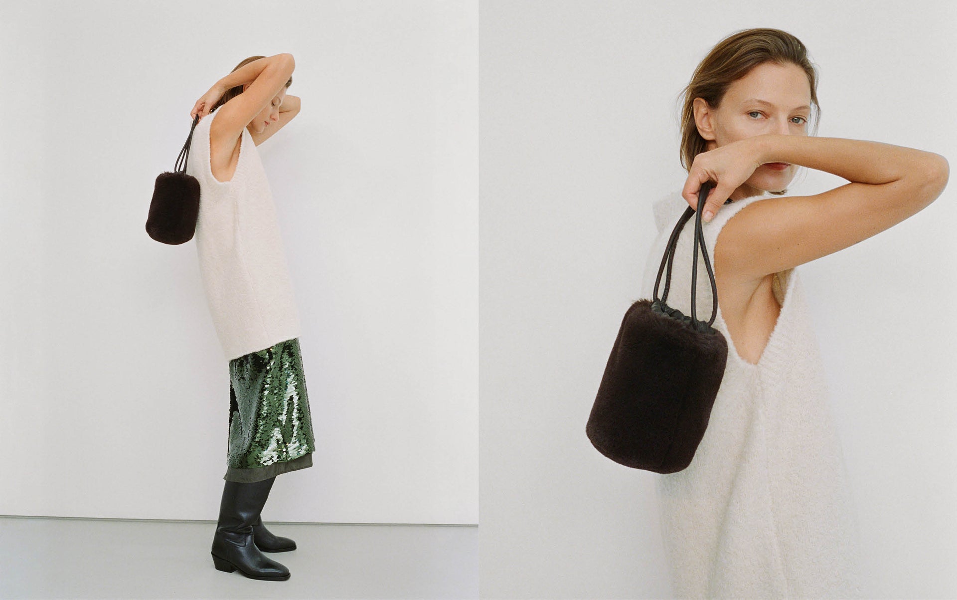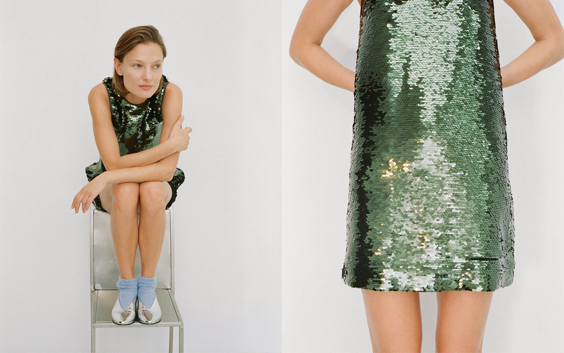 Un jersey marrón de doble cara de elegancia atemporal, un minivestido de lana y alpaca en color crudo o una falda de lentejuelas verde noche.