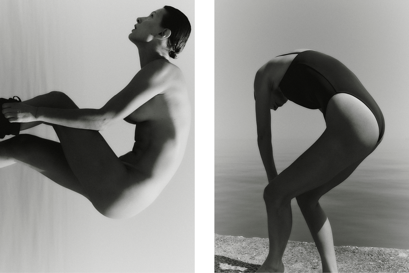 Una colección cápsula de tres bañadores de corte escultural y líneas puras, un vestido camisero de rayas, una falda ligera y accesorios de baño esenciales.