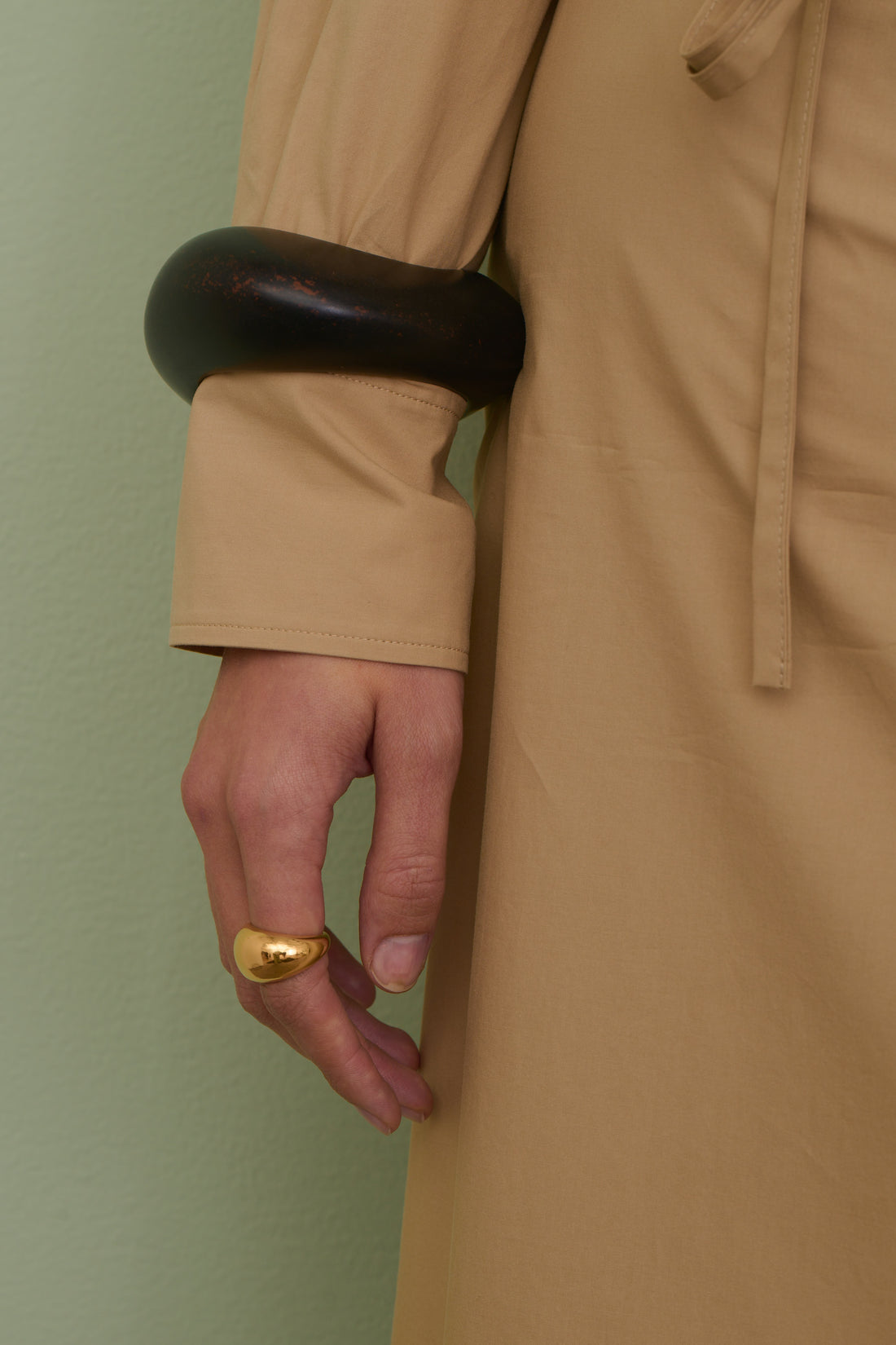 ZELIE es un anillo de latón abombado. Se puede llevar solo o superpuesto. También está disponible en plata, para crear la ilusión de un anillo de dos tonos.