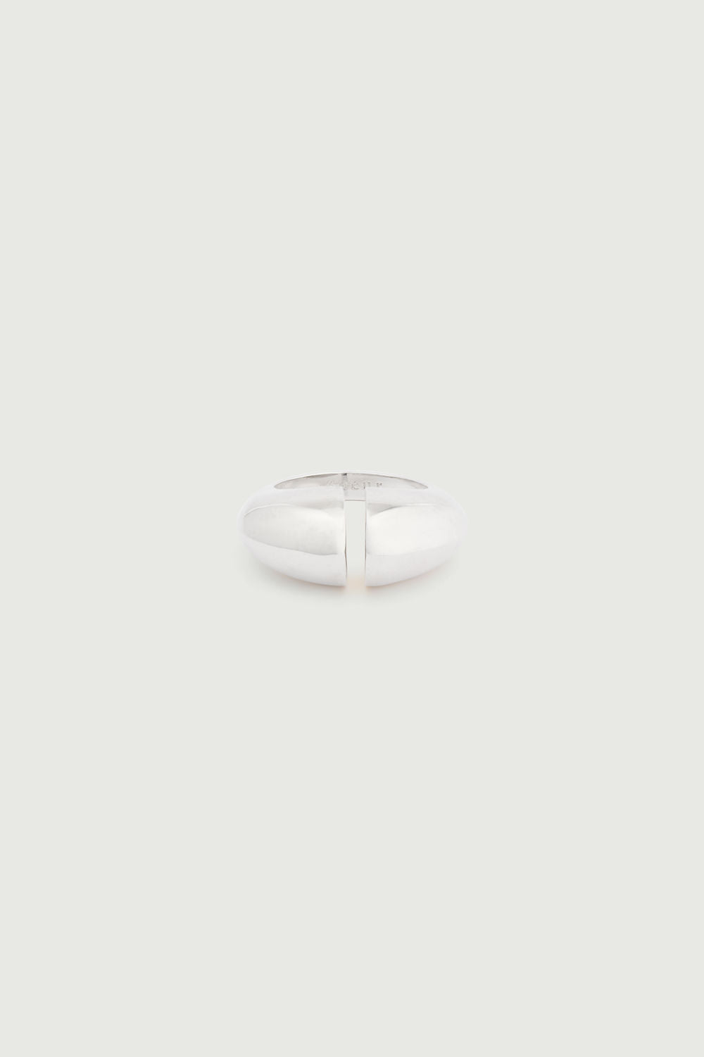 La línea MOON se define por un diseño escultural y redondeado, roto en algunos puntos como para aligerar sus formas. La colección incluye una pulsera brazalete para llevar sobre un jersey, un anillo macizo y pendientes en dos tamaños.
