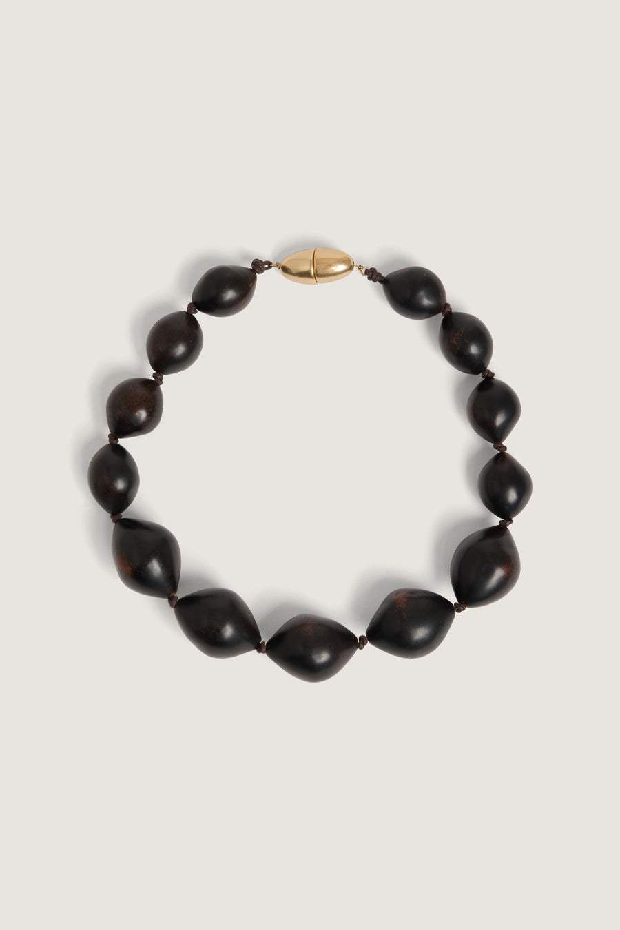 ZAMIA es un collar corto de nuestra línea GRAINE. El diseño de sus cuentas recuerda a una semilla orgánica. El cierre, de color dorado, es de rosca. Realizado en resina, el color marrón madera puede variar de una pieza a otra.