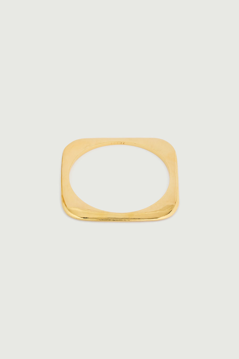 La línea PLATE es decididamente minimalista y gráfica. Las formas angulosas y redondeadas de pulseras, anillos y pendientes se alternan y superponen al llevarlos. Resaltadas por la alternancia de tonos plateados y dorados, las joyas están realizadas en latón.