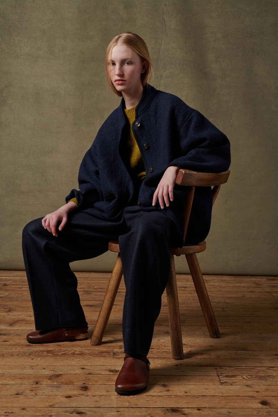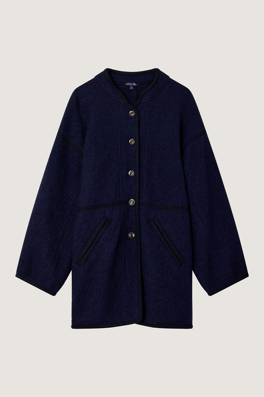 Abrigo Harvard largo con cinturón de lana de doble faz