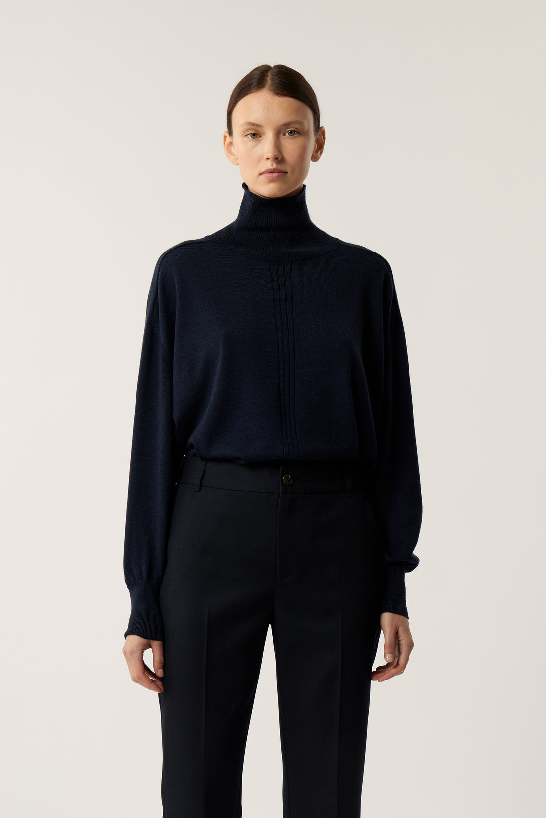 jersey de cuello alto de lana merino navy