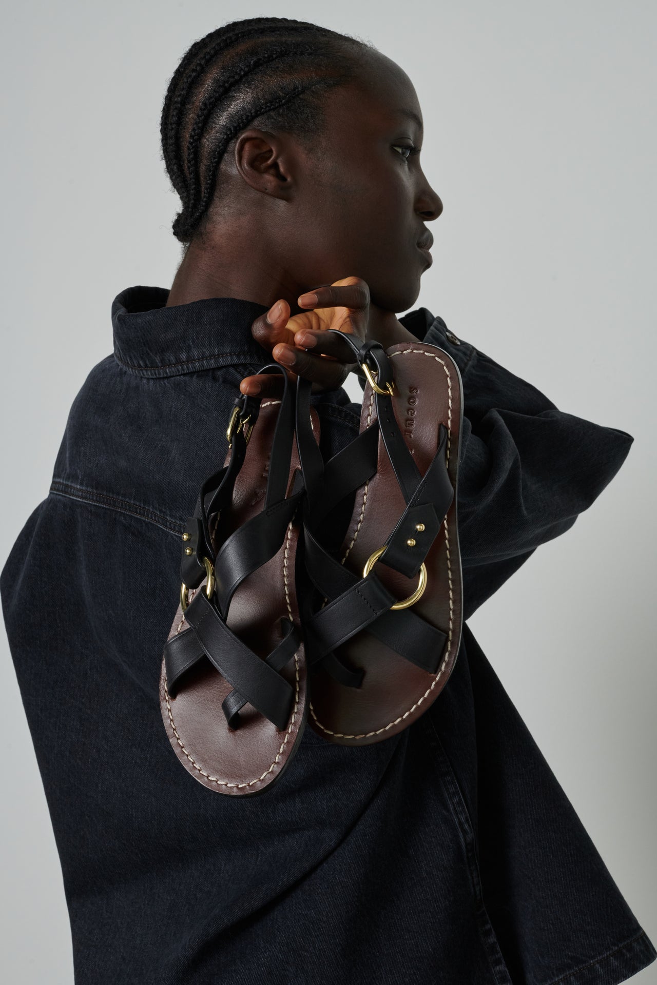 FLORENCE es un par de sandalias planas de cuero. Las tiras cruzadas visten la parte delantera del pie y rodean el dedo gordo. La suela plana completamente pespunteada y el anillo dorado caracterizan esta sandalia icónica que se ofrece cada temporada en nuevos colores exclusivos.