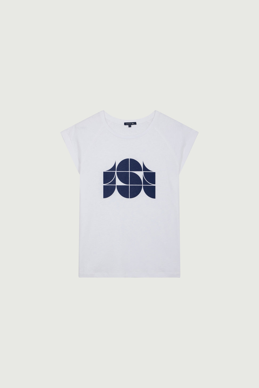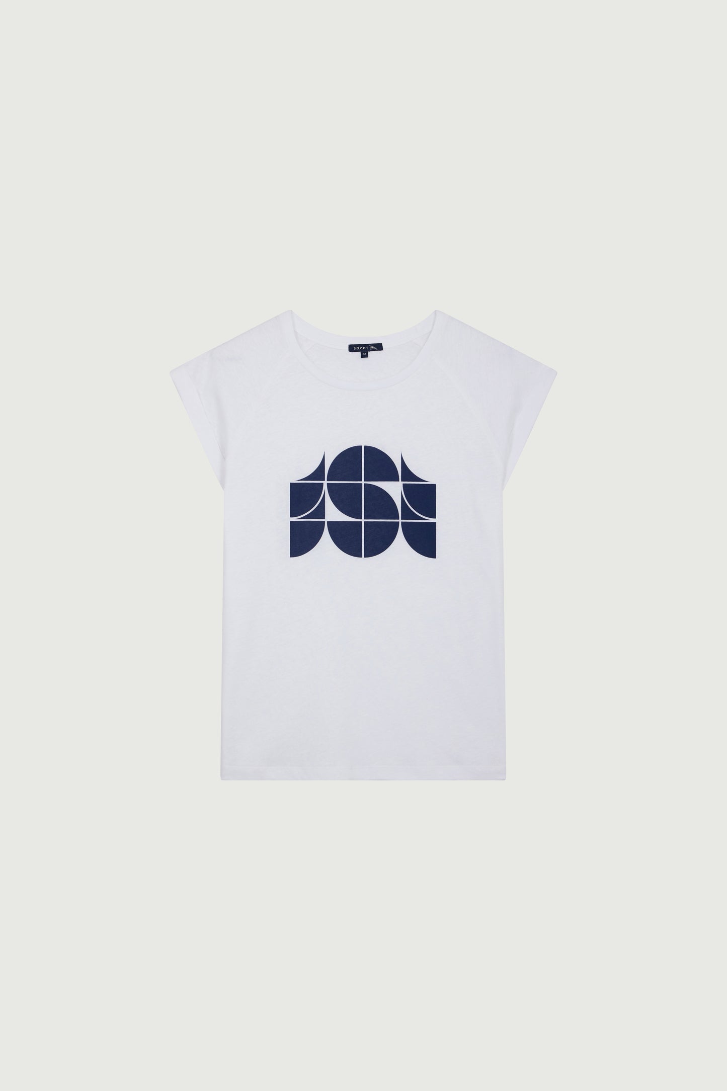 VALENTINA es una camiseta de cuello redondo icónica del vestuario Soeur. Está serigrafiada con nuestro monograma "S". Es un jersey que mezcla hilos de algodón y lino, otorgándole un tacto auténtico que contrasta con los códigos "sportswear" de sus mangas raglán y puños doblados.