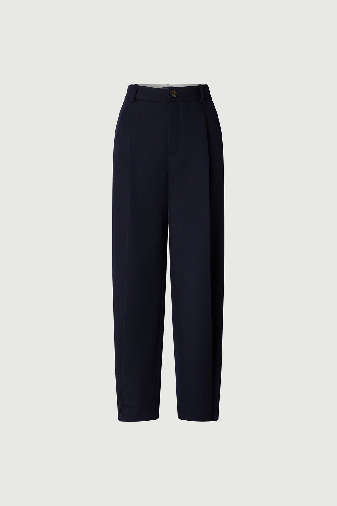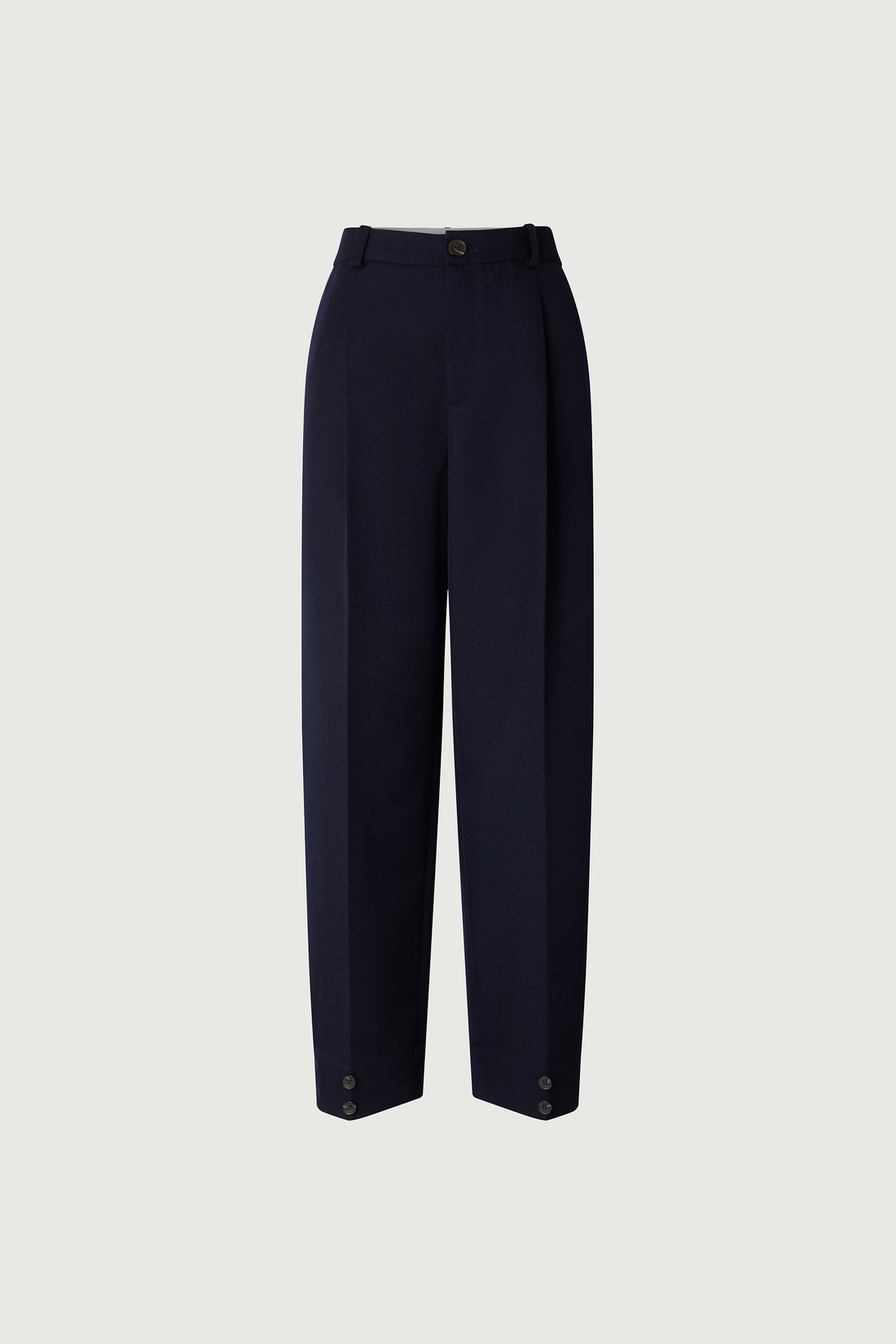FELIX est un pantalon à pinces taille haute. Incontournable du vestiaire Soeur, il est reconnaissable par son système de boutonnage qui permet un double porter : fermé, il ressert le bas de jambe pour créer un léger arrondi, ouvert il aura une jambe large et droite. La gabardine de laine offre une tenue et un tomber impeccable à ce pantalon intemporel.