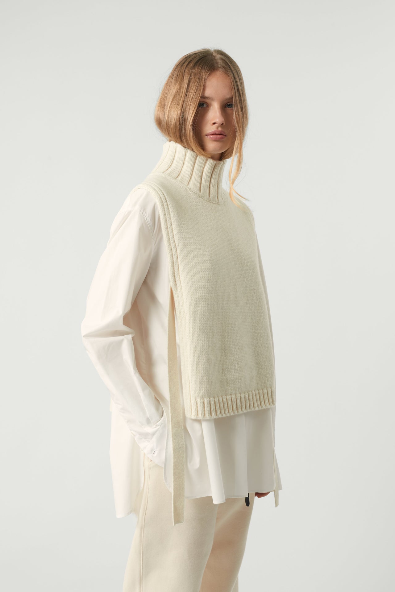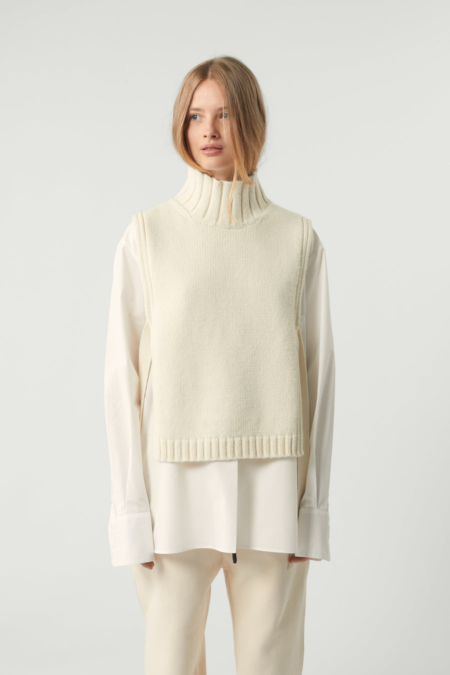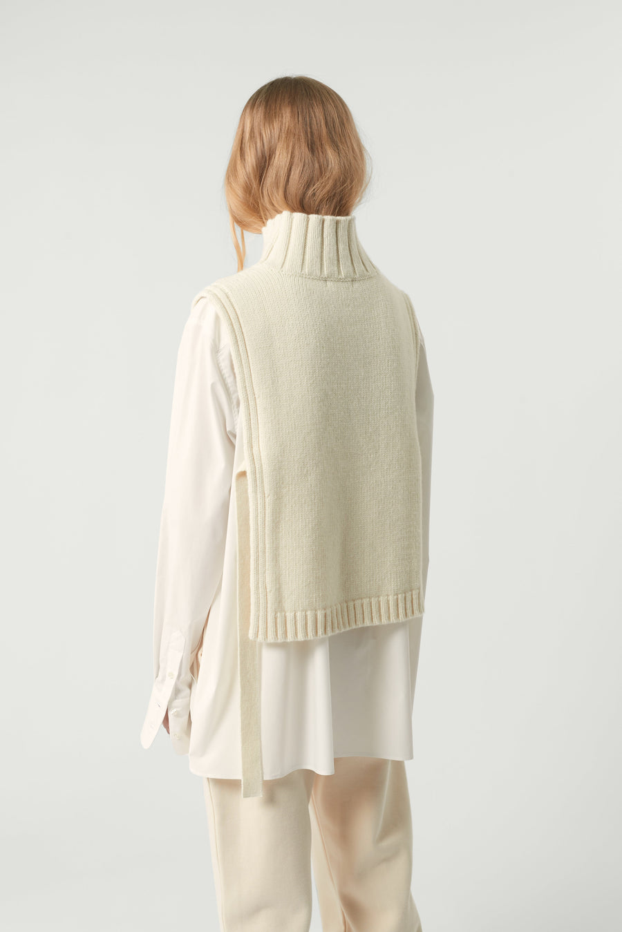 OR est notre plastron en laine signature. La maille, tricôtée de façon compacte et dense, offre une certaine tenue et un col montant bien droit qui allonge la silhouette. Pratique, il réchauffera toutes les tenues avec style, sans contraindre le mouvement des bras s'il est glissé sous une veste ou un manteau.
