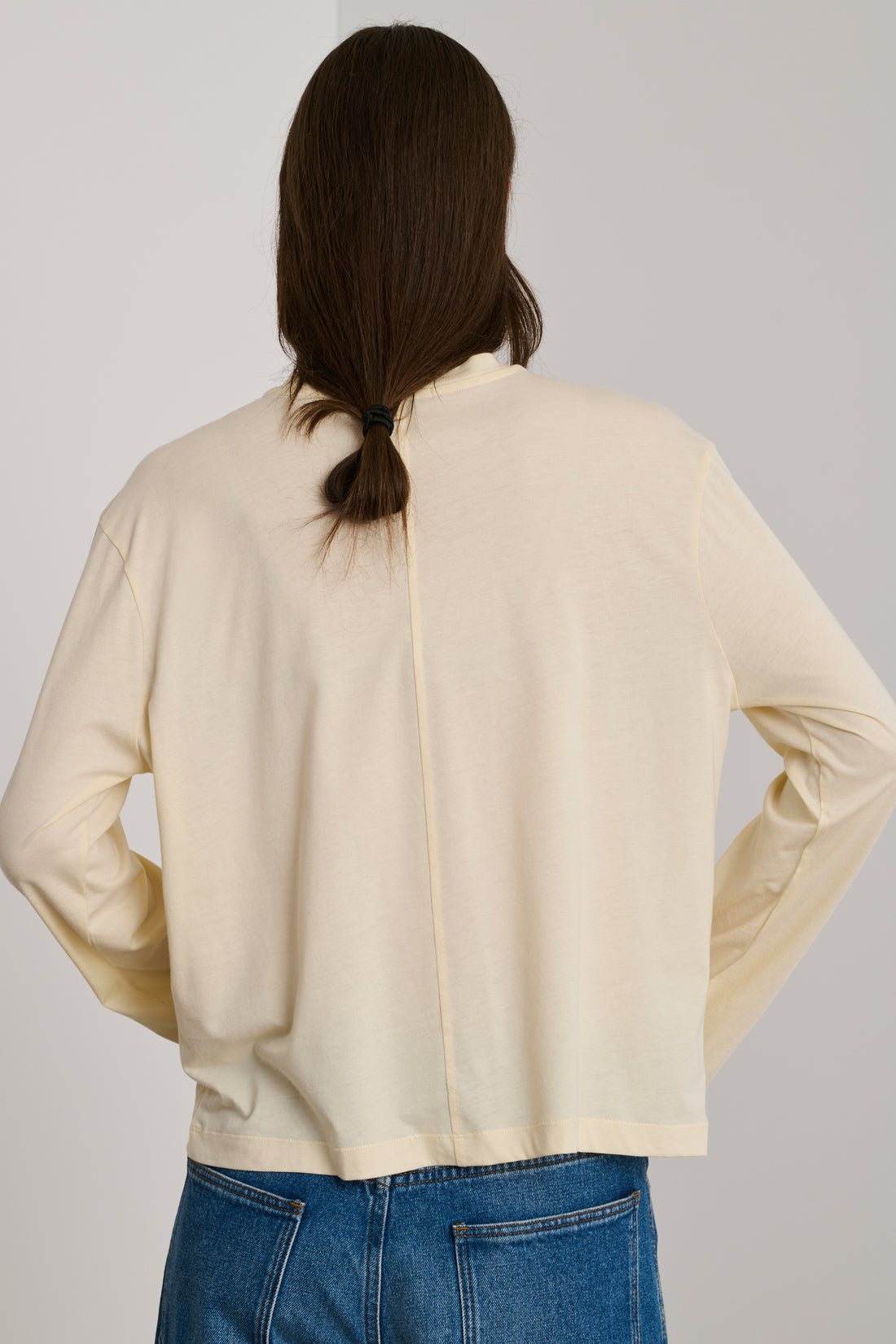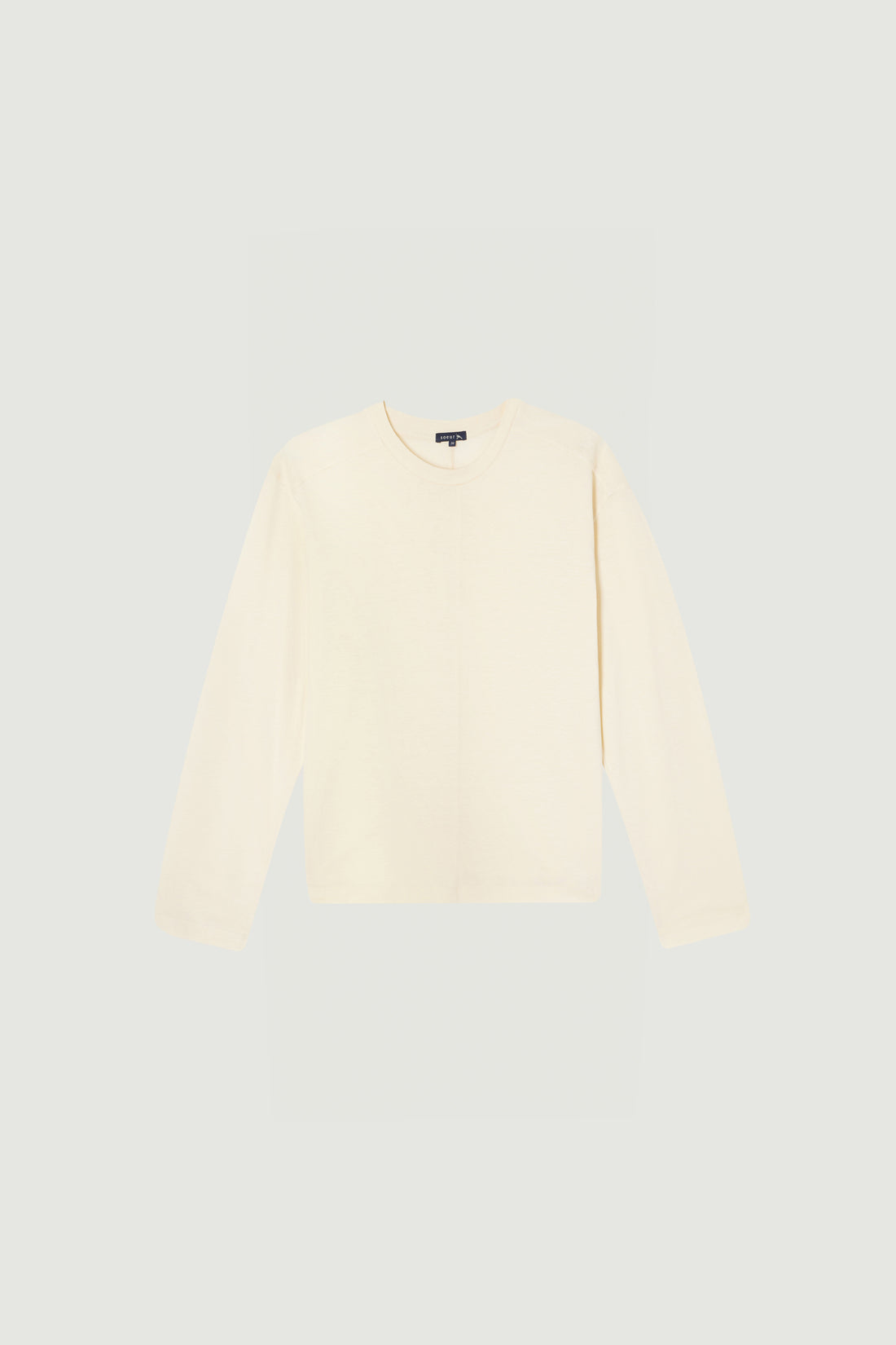 ADELIE est un tee-shirt manches longues en coton extra-fin. Les épaules et le milieu devant sont soulignés par des coutures surpiquées qui apportent du relief. Le coton Supima® offre à ce jersey d'exception une main douce et respirante, comme un tricot "seconde peau".